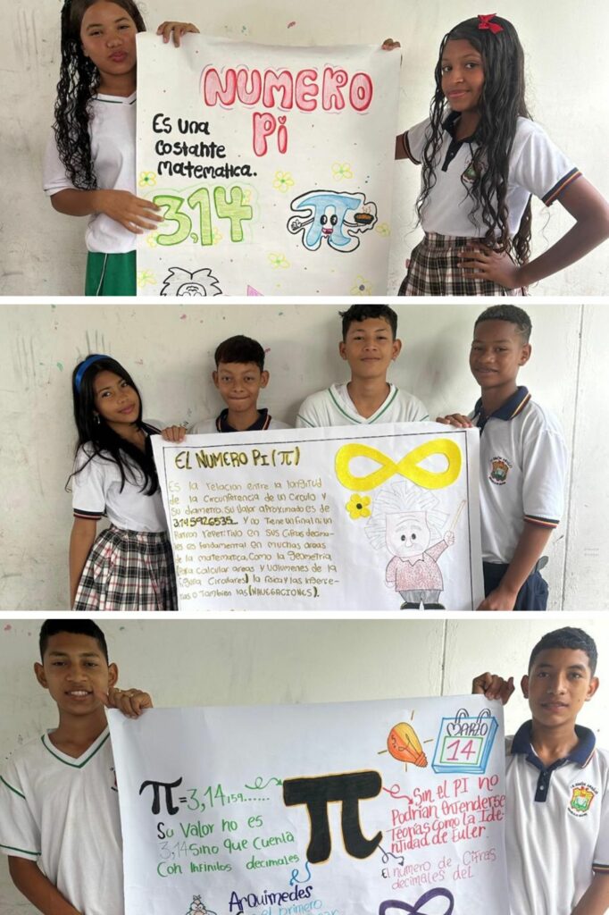 La celebración se realizó en las sedes de primaria: Minuto, Villa Mady, Progreso Trinidad y Delicias, donde los estudiantes participaron en diferentes actividades como lecturas, dibujos, murales y carteleras, demostrando su creatividad y aprendiendo de forma dinámica sobre el fascinante mundo de las matemáticas.