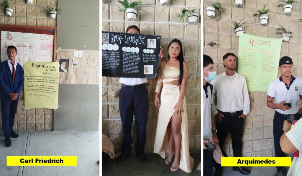 En la sede principal de secundaria, los estudiantes también se vincularon activamente a esta conmemoración. Los estudiantes de grado 11 lideraron juegos y concursos matemáticos, promoviendo la participación y el aprendizaje entre sus compañeros. Además, se realizaron cuadros vivos representando a importantes matemáticos que aportaron significativamente al desarrollo de esta ciencia, permitiendo conocer parte de la historia de las matemáticas de una manera creativa y didáctica.